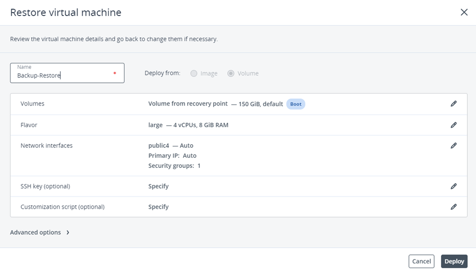 Restore edilecek sanal makinenin kaynaklarını belirlemelisiniz. Sonrasında sanal makine kurulum işlemleri tamamlanacaktır.