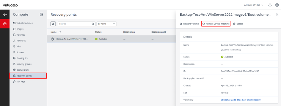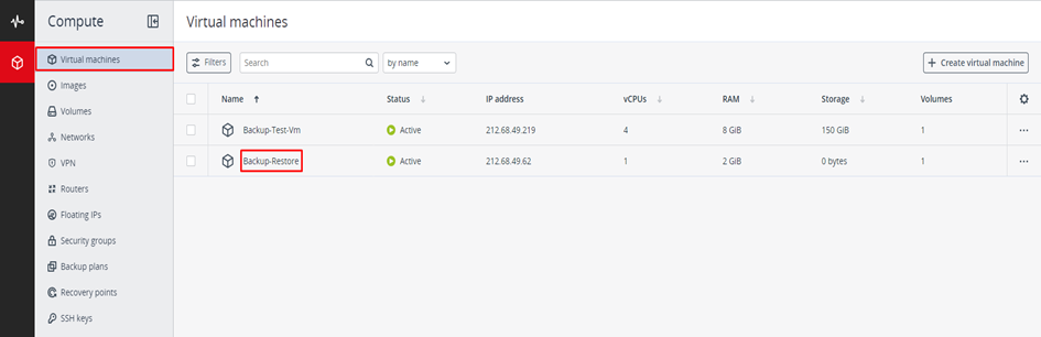 Kendi panelinizde yukarıda gördüğünüz ekrana gidip restore etmek istediğiniz sanal makineyi seçin. Akabinde yukarıdaki görselde işaretli gözüken Restore Virtual Machine seçeneğine tıklayın.